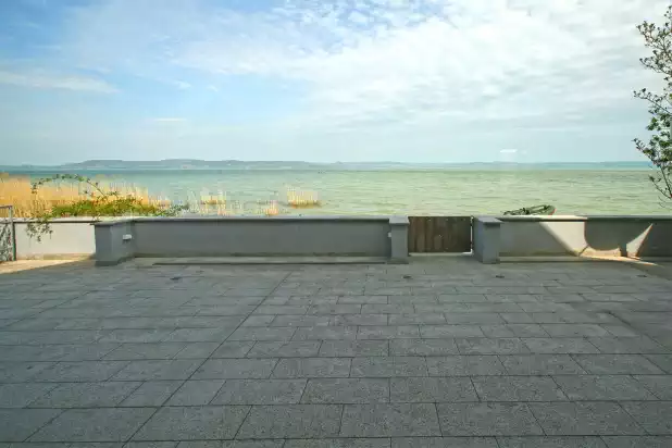 A 41 méter partszélesség, nagyon széles rálátást biztosít a tóra. Nem hinném, hogy sok ilyen hely lenne a Balatonnál. Az ilyen, és ehhez hasonló ingatlanok ritkák, nem állnak korlátlanul rendelkezésre. A teraszról közvetlen kijárat van a saját stégre.